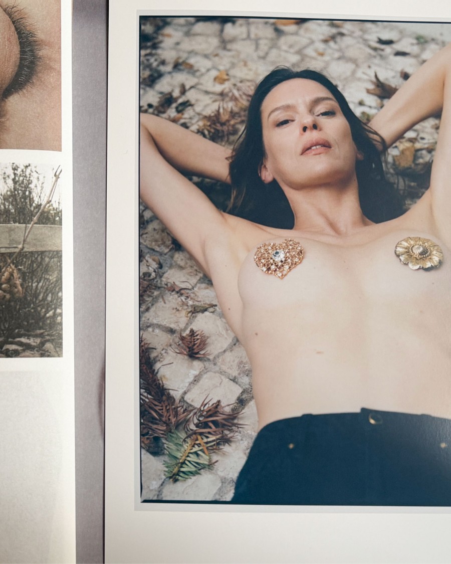 Pages filled with chunky lashes, Tokyo skyscrapers, legs until forever, a suit tailored to perfection, exaggerated poses, bare skin and burning plastic. Forest fire remains, a lizard, nylon stockings, water drops, breasts, white T-shirts, ancient pyramids, rawness and fragile beauty, — all brought together by pure desire.